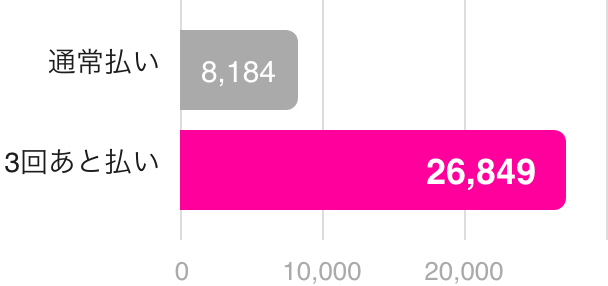 「3回あと払い」で普段ではちょっと高くて手が届かない商品の購入やまとめ買いが期待でき、平均単価UPが期待出来ます。